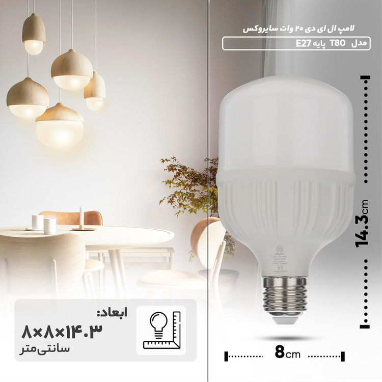 لامپ ال ای دی 20 وات سایروکس مدل T80 با پایه E27، یک انتخاب مناسب برای روشنایی فضاهای گسترده است. این لامپ با طول عمر بالغ بر 15000 ساعت، از دوام و ماندگاری بالایی برخوردار است و نیاز به تعویض مکرر را از بین میبرد. میزان روشنایی این لامپ حدود 1900 لومن است، که نوری روشن و دلنشین را در فضاها تأمین میکند. با توان 20 وات، این لامپ توانایی روشنایی معادل یک لامپ کممصرف با توان 40 وات را دارا میباشد، که باعث صرفهجویی در مصرف انرژی و کاهش هزینهها میشود. این لامپ با پایه E27 سازگار است و نصب و استفاده آن بسیار آسان است. زاویه نوردهی این لامپ 360 درجه بوده، به معنی این است که نور به صورت یکنواخت در تمام اتاق منتشر میشود و فضا را بهطور کامل روشن میکند. این لامپ با ولتاژ 230 ولت سازگاری کاملی با سیستم برق خانگی دارد و بدون نیاز به هرگونه تغییرات و تنظیمات اضافی قابل استفاده است. با انتخاب لامپ ال ای دی 20 وات سایروکس مدل T80 با پایه E27، شما از روشنایی قوی و کفایتمند، صرفهجویی در مصرف انرژی و ماندگاری بالا لذت خواهید برد. این لامپ با ویژگیهای منحصر به فرد خود، نیازهای روشنایی شما را به بهترین نحو ممکن برطرف میکند.